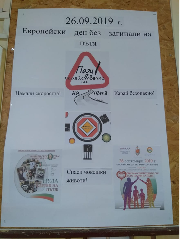 На 26 септември под мотото „Обичам семейството си! Да го пазим на пътя!“ отбелязахме  Европейския ден без загинали на пътя. Учениците изработиха постери.