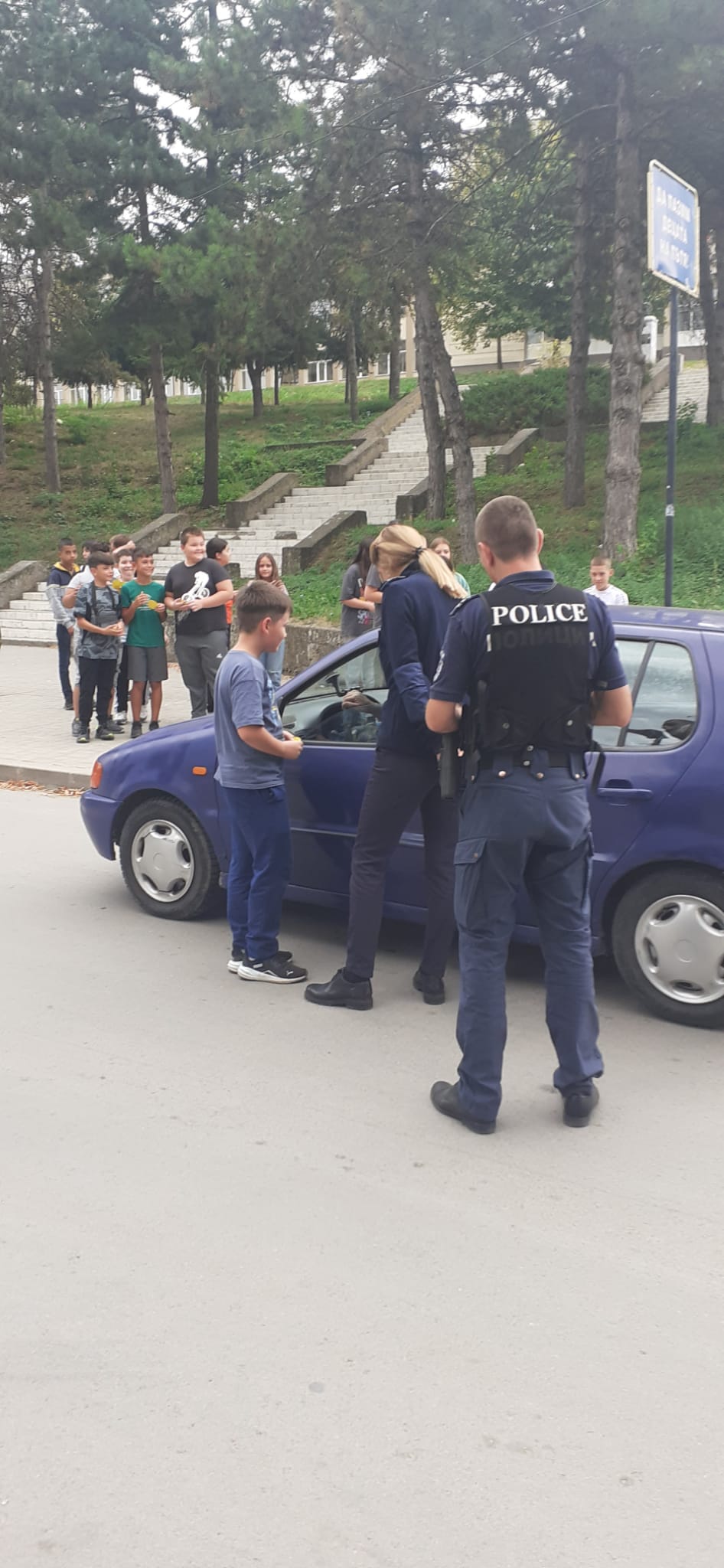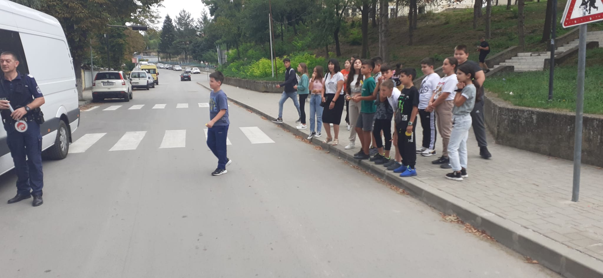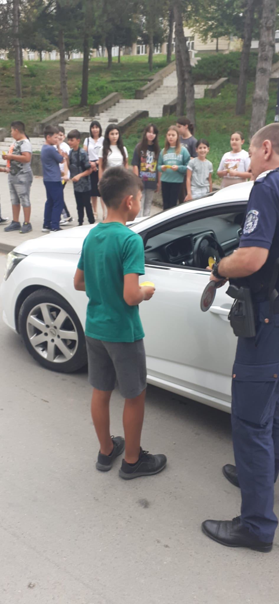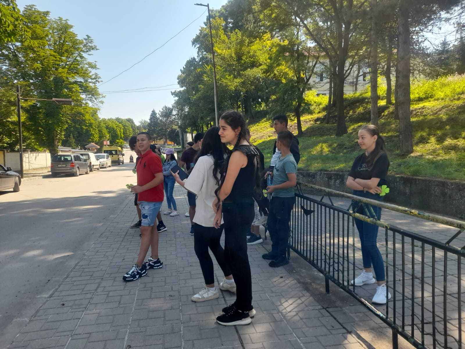 Ученици от V „а“ и „б“ клас съвместно с органи на МВР  раздаваха  флаери с усмивка на водачите на МПС с апел за безопасно и разумно шофиране.