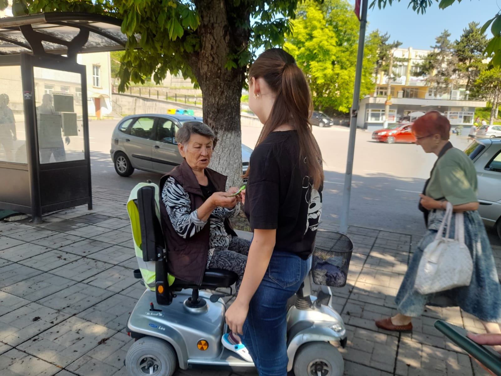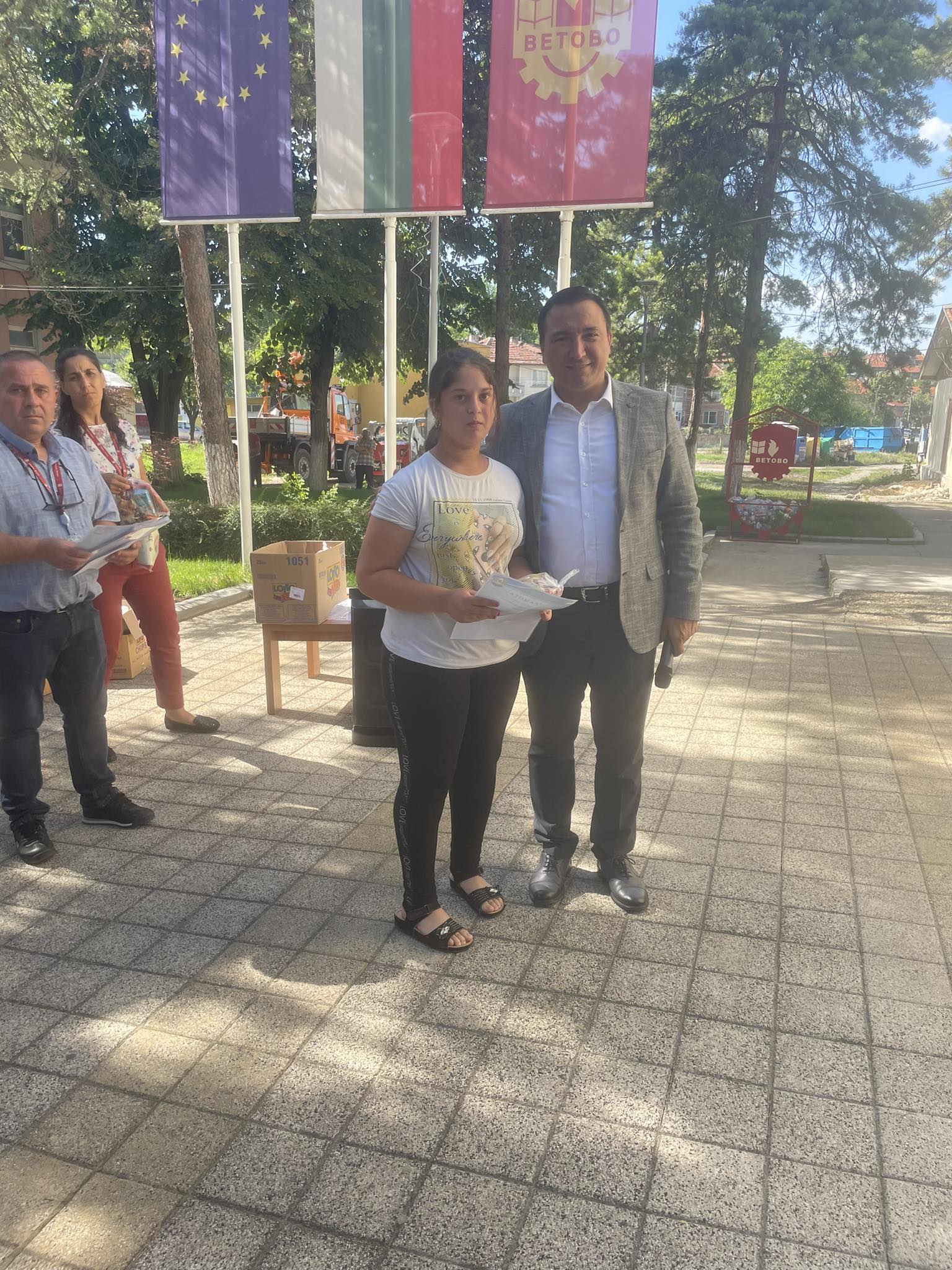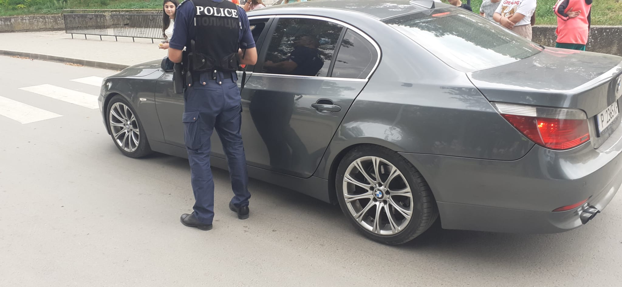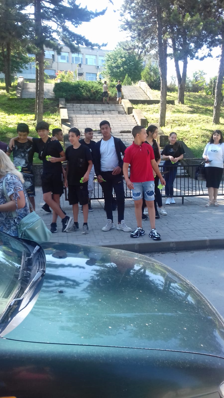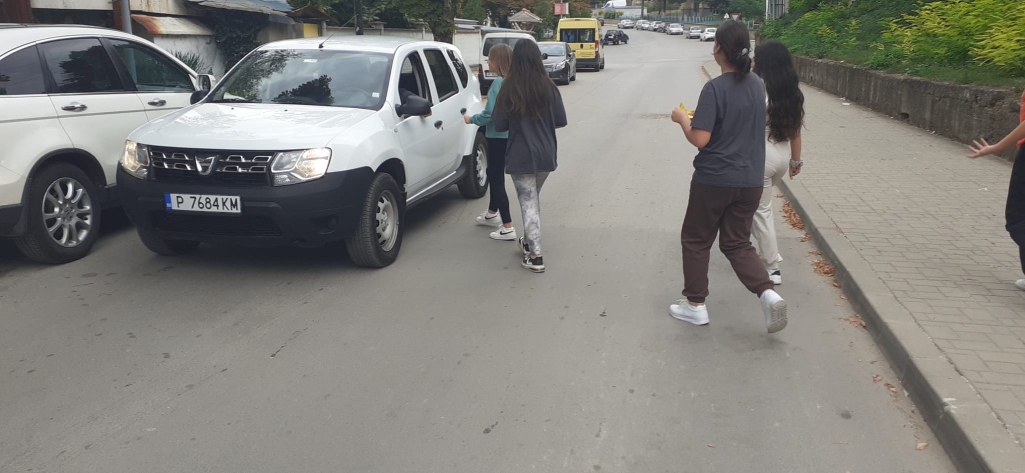 Ученици от V „а“ и „б“ клас съвместно с органи на МВР  раздаваха  флаери с усмивка на водачите на МПС с апел за безопасно и разумно шофиране.