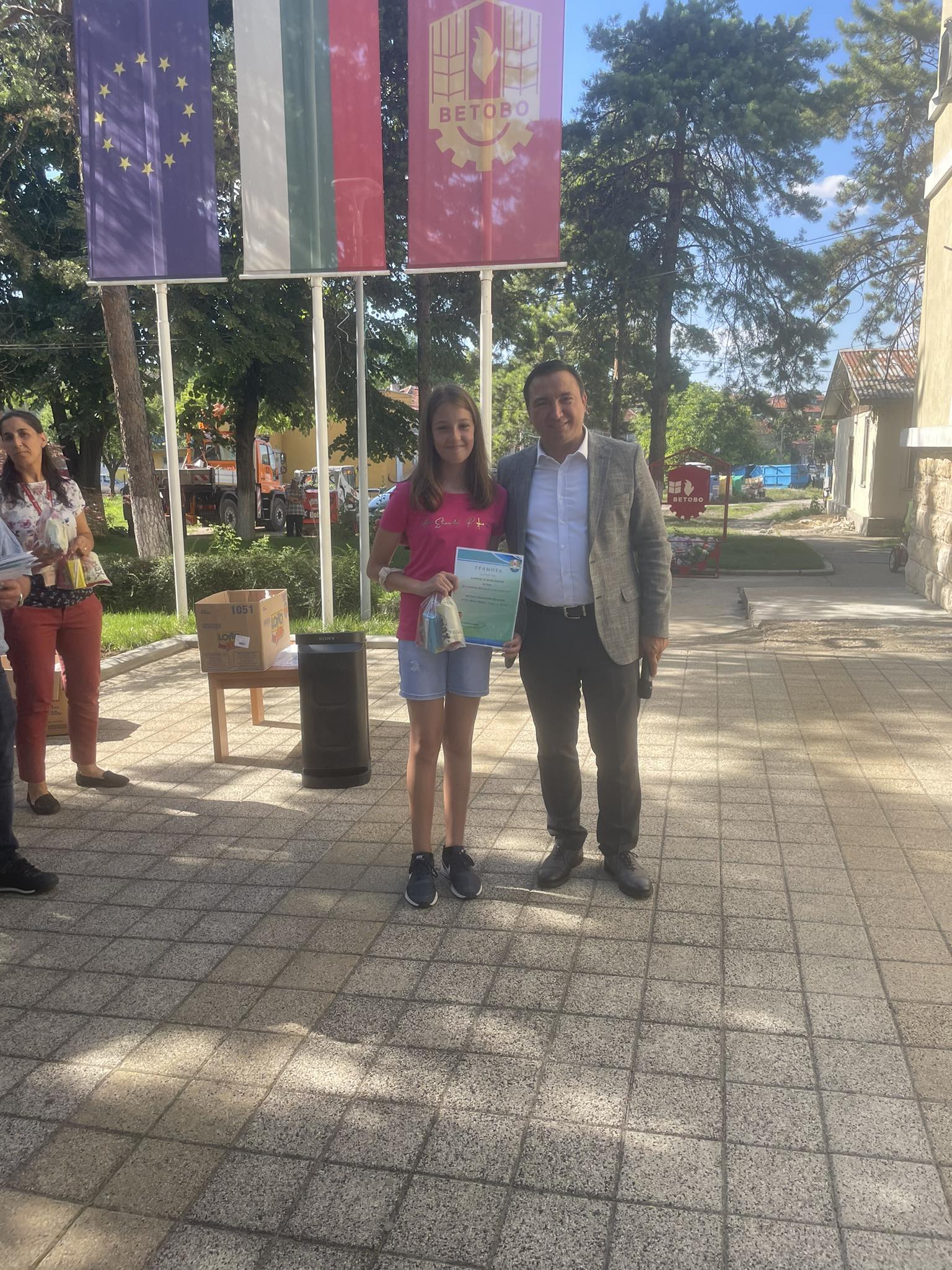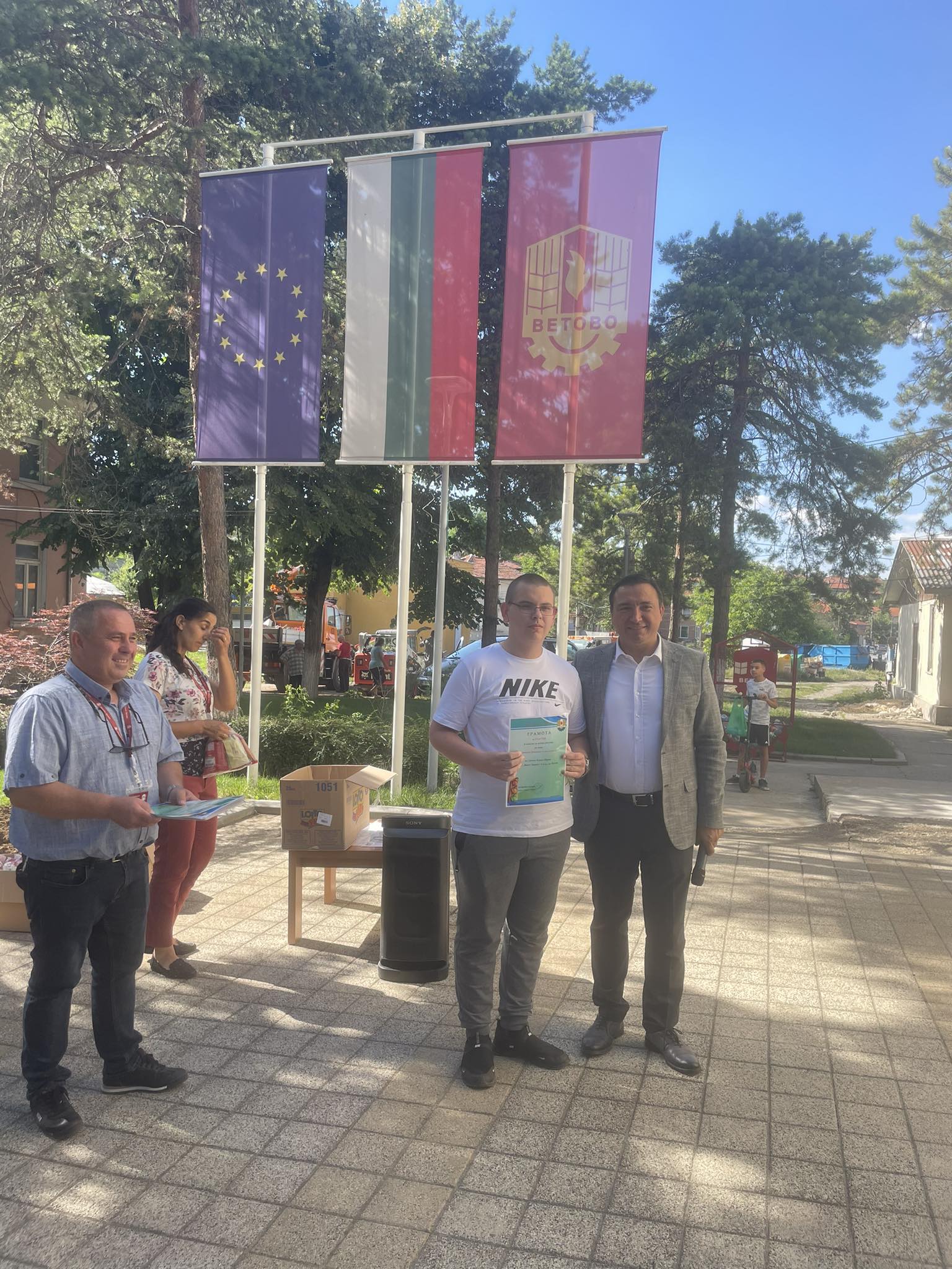 Награждаване на победителите от състезанието с велосипеди в Световния ден за безопасността на движението по пътищата