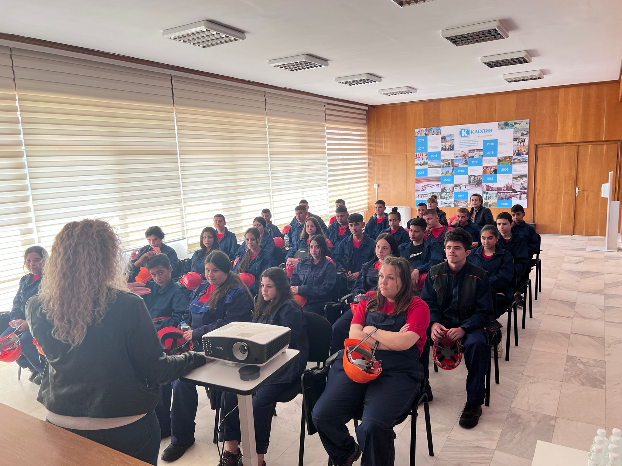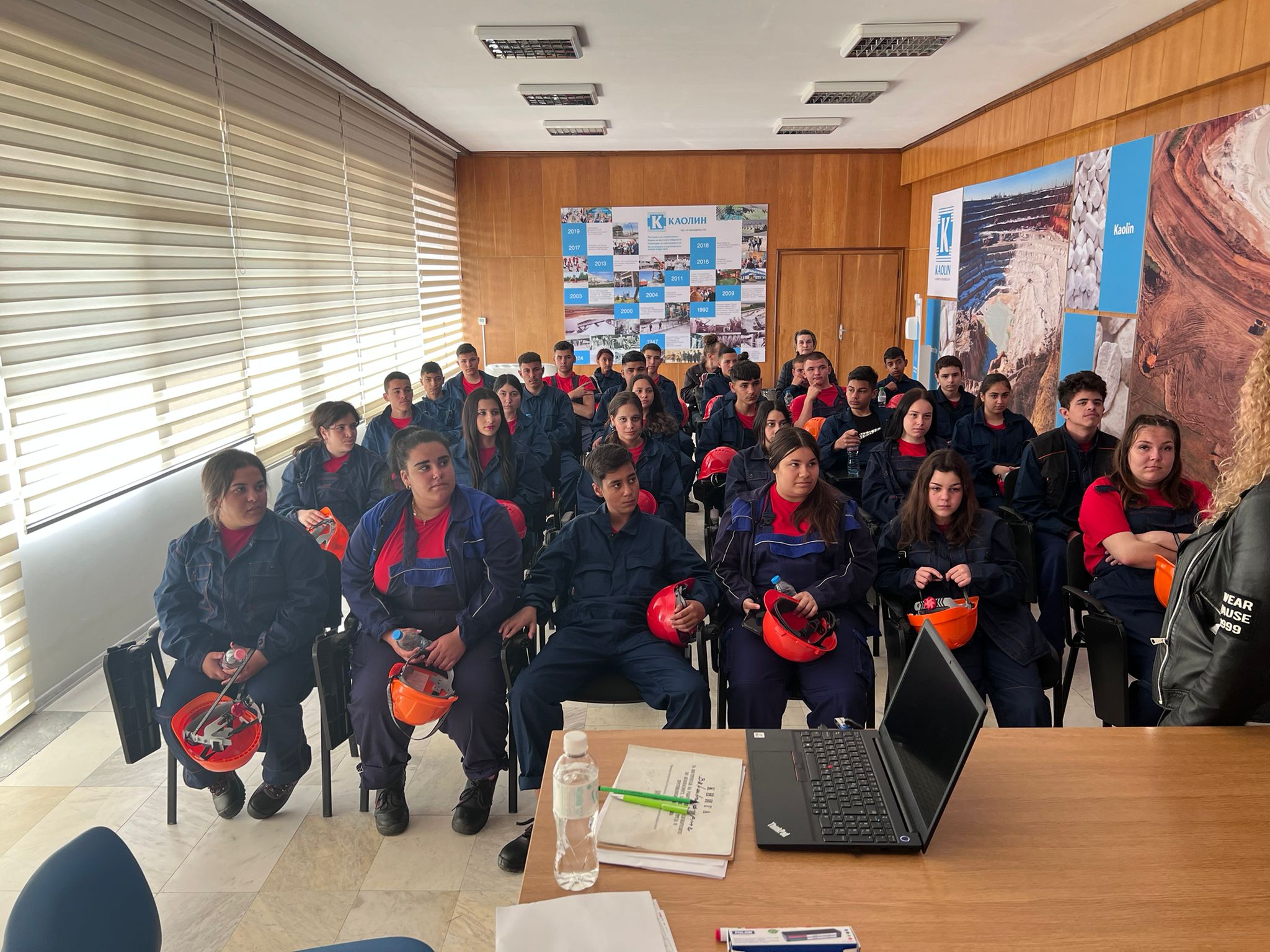 Учениците от 8 а клас – специалност „Обогатителни, преработващи и рециклационни технологии, 8 б и 9 клас – специалност „Електрообзавеждане на производството“ на 14 и 16.03.2022 г. проведоха пробно стажуване във фирмата партньор по проект: „Подкрепа за дуалната система“. По време на стажуването в Каолин ЕАД имаха възможност да се запознаят с процеса на организация и производство в реална работна среда. Учениците, които се обучават в дуална форма бяха облечени със закупено за целите на проекта работно облекло.